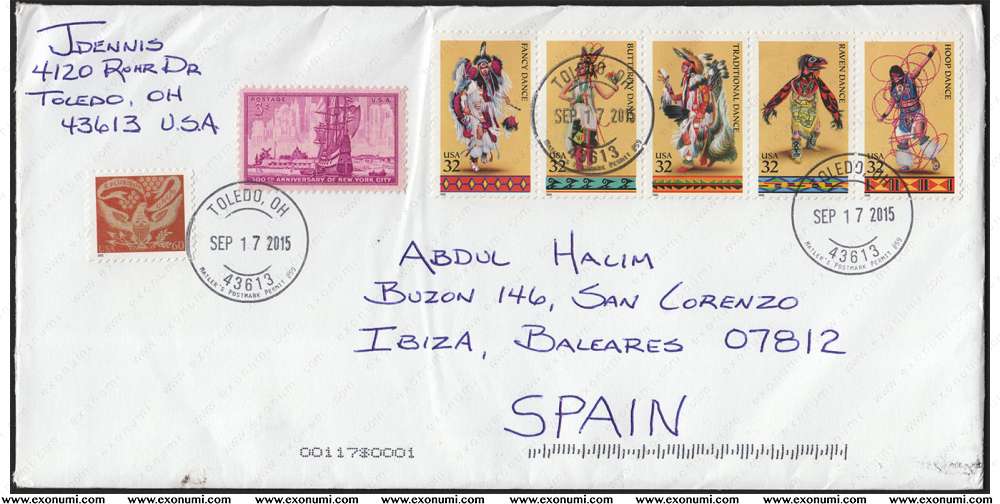 Spain - Postal Cover from USA (2015) with Private Postmark