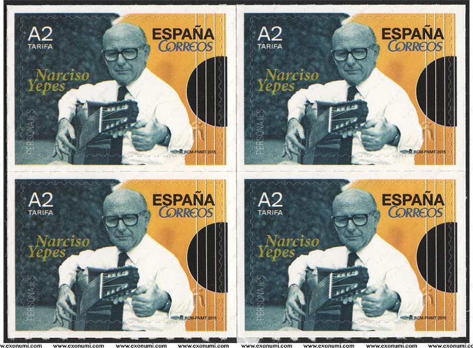 Spain - Personality: Narciso García Yepes (2015) Block of 4 with New Tariff A2
