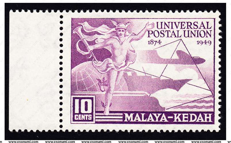 Kedah : 75th Anniversary of Universal Postal Union (UPU) 1949 - Complete MNH with Left-Margins
