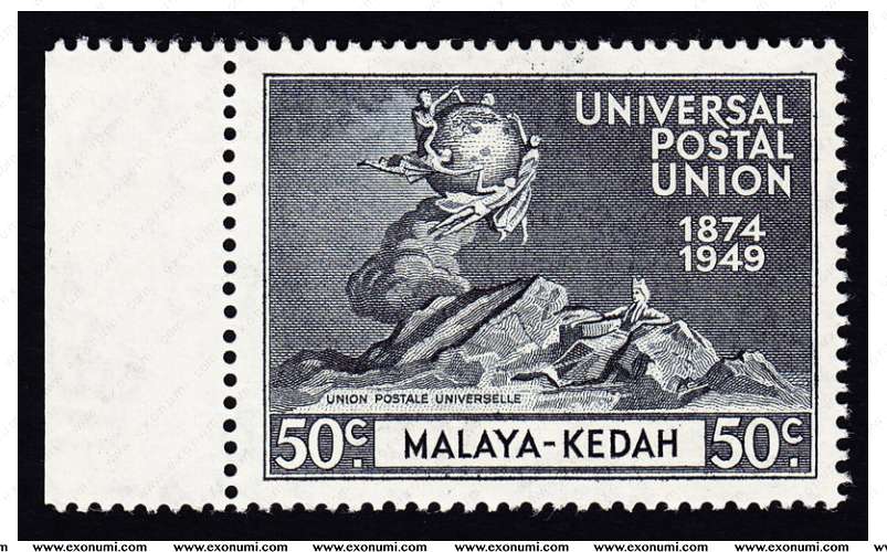 Kedah : 75th Anniversary of Universal Postal Union (UPU) 1949 - Complete MNH with Left-Margins