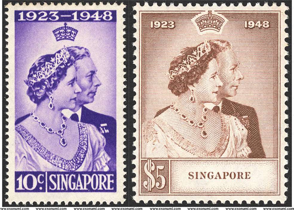 State of Singapore - King George VI & Queen Elizabeth : Silver Royal Wedding (1923 - 1948) MNH