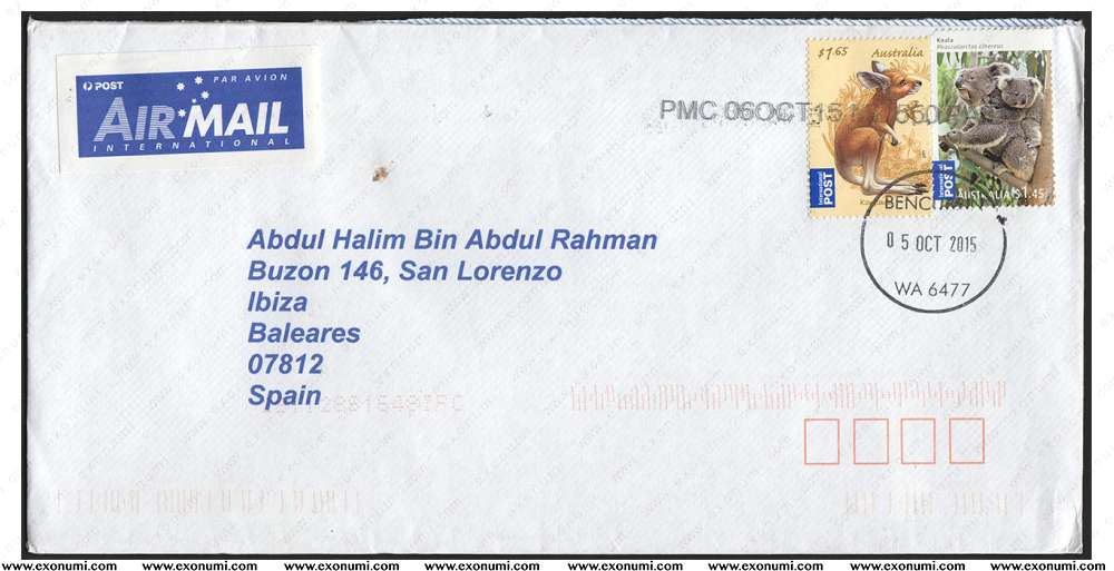 Spain - Postal Cover from Australia (2015) with Two Different Dates Cancellation
