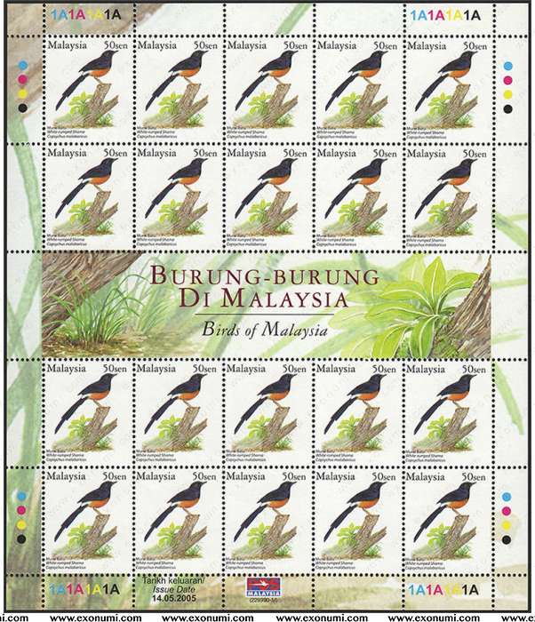 Malaysia - Birds Definitive Series : 50 sen Sheetlet (2005)