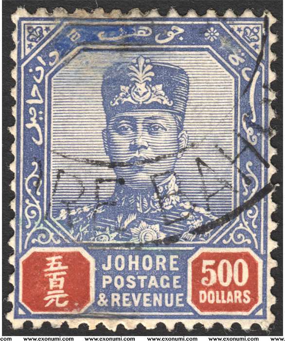 Sultanate of Johore $500 (1926) Fiscally Used & Repaired