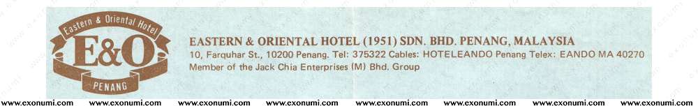 Malaysia : Private Aerogram from Eastern & Oriental Hotel, Penang