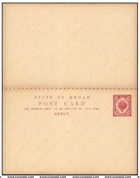 Sultanate of Kedah - 5 Pieces of 3¢ Postcard + 3¢ Reply Card + Banderole (1912)