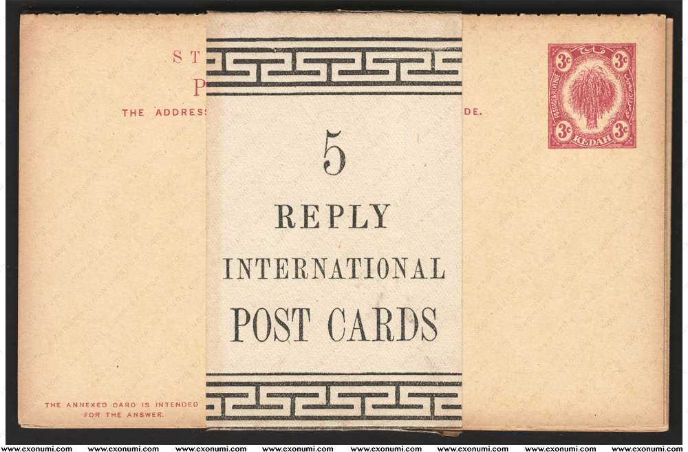 Sultanate of Kedah - 5 Pieces of 3¢ Postcard + 3¢ Reply Card + Banderole (1912)