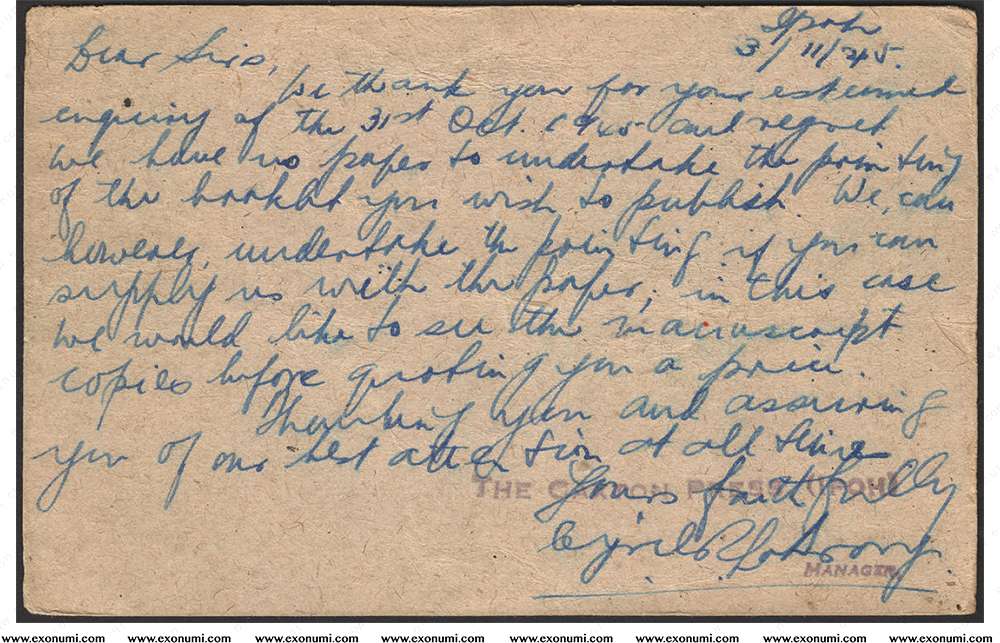 Malaya : British Military Administration (BMA) - 4¢ Postcard, Used in 1945