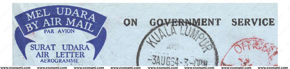 Malaysia - Official Aerogramme, Used in 1964 to the USA