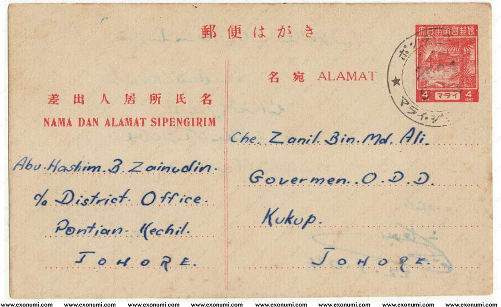 Malaya : Japanese Occupation - Postcard Used in Johore 1944
