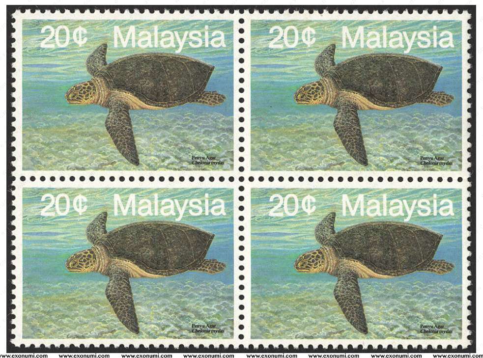 Malaysia - Marine Life (Series III - Turtles) 1990 MNH Block of 4