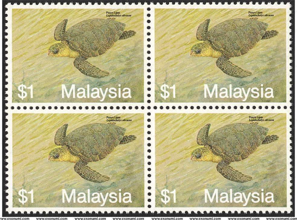 Malaysia - Marine Life (Series III - Turtles) 1990 MNH Block of 4