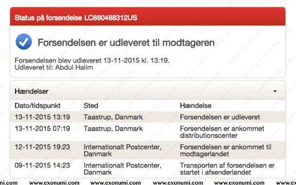 Denmark - USPS Priority Mail with Delivery Confirmation from USA (2015)