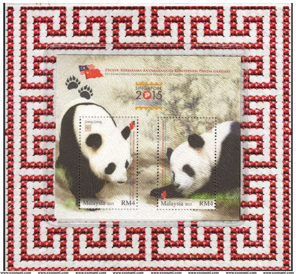 Malaysia - Singapore 2015 World Stamp Exhibition : Overprinted on International Cooperative Project On Giant Panda (2015)