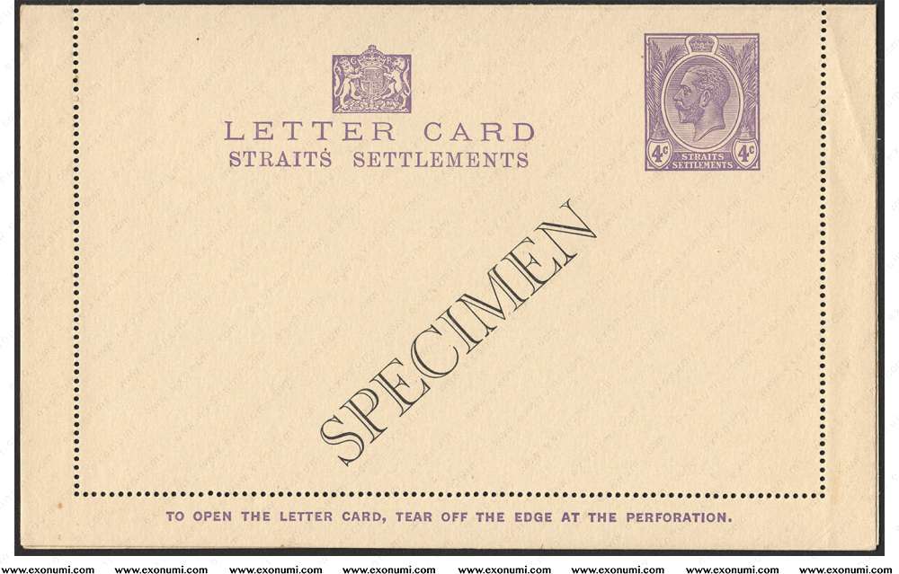 Straits Settlements : King George V - Letter Card (1928) Overprinted SPECIMEN [Quite Scarce]