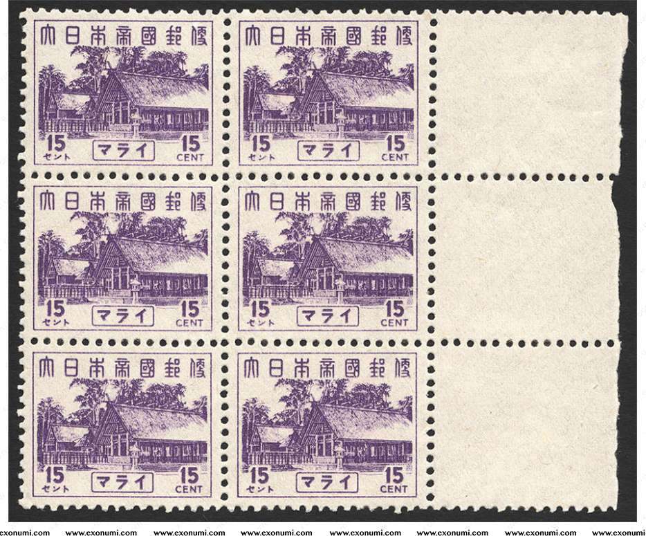 Malaya : Japanese Occupation - 15¢ Block of 6 with Gutter Margin of Right-side