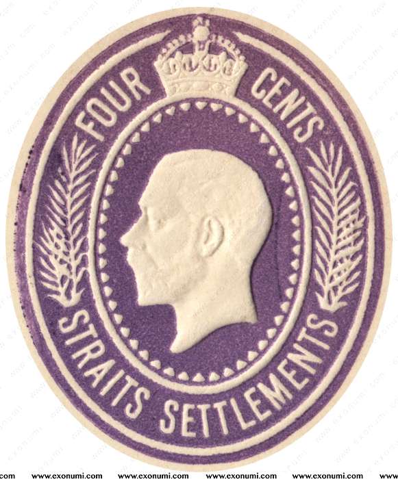 Straits Settlement - King George V : 4¢ Prepaid Envelope (1928) Violet, Overprinted SPECIMEN