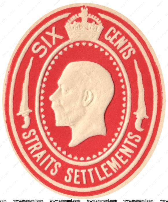 Straits Settlement - King George V : 6¢ Prepaid Envelope (1928) Red, Overprinted SPECIMEN