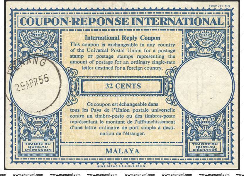 Malaya - International Reply Coupon : London Design XVI-ua (1955) Penang