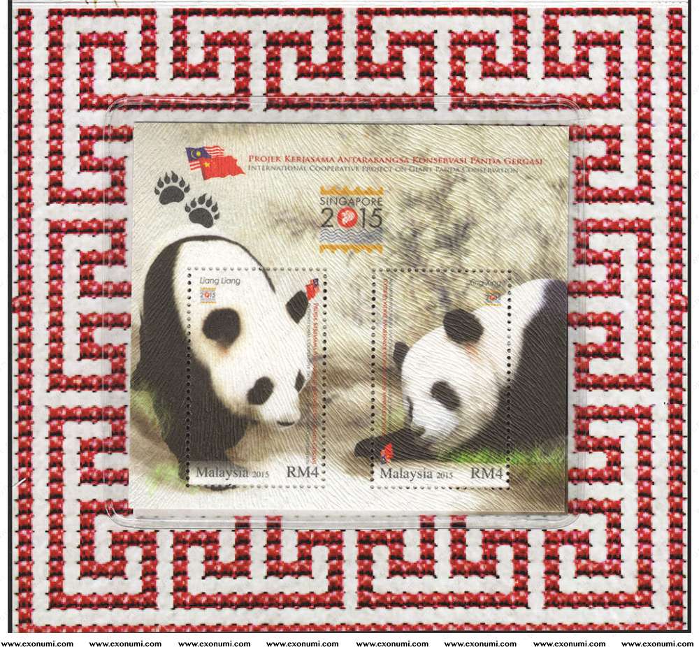 Malaysia - Singapore 2015 World Stamp Exhibition : Overprinted on International Cooperative Project On Giant Panda (2015)