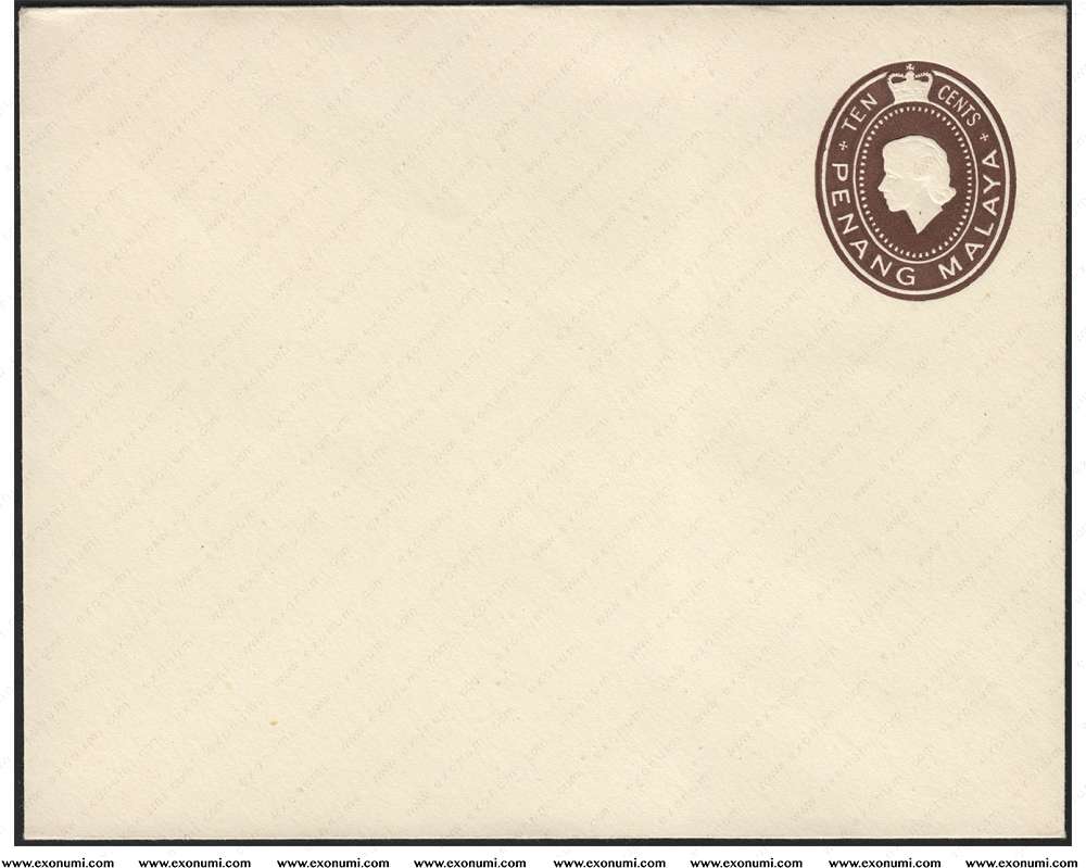 Penang, Malaya - Queen Elizabeth II : Prepaid Envelope 10¢ (1954) Mint