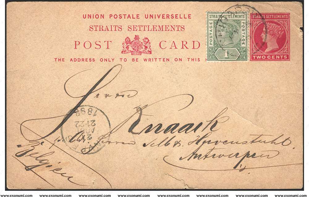Straits Settlements - Queen Victoria 2¢ + 1¢ Uprated, Used in 1898 to Belgium