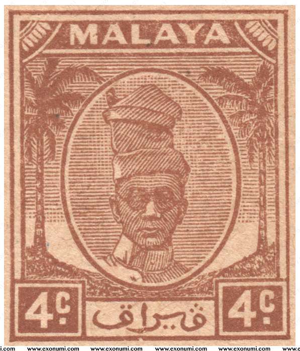 Perak - 4¢ Postcard Portrait of Sultan Yussuf Izzuddin Shah (1950) Mint