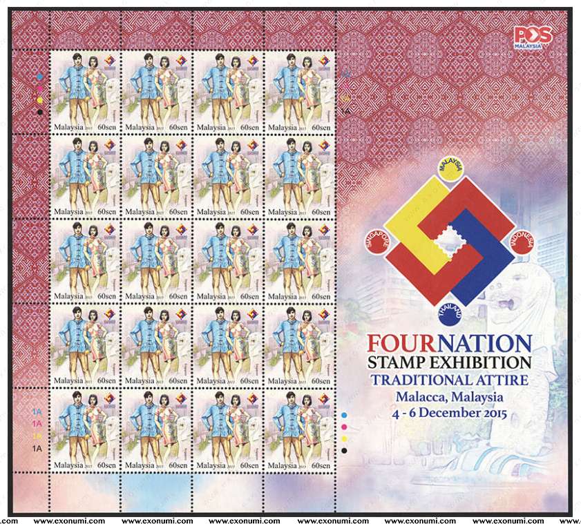 Malaysia - Four Nation Stamp Exhibition : Traditional Attire (2015) Sheet MNH