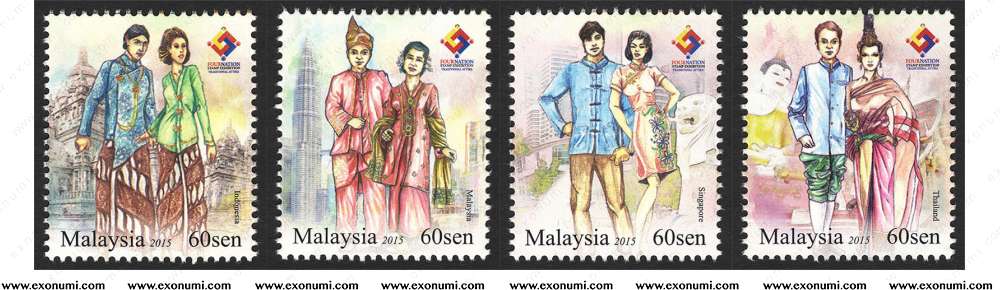 Malaysia - Four Nation Stamp Exhibition : Traditional Attire (2015) Stamps MNH