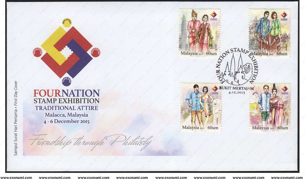 Malaysia - Four Nation Stamp Exhibition : Traditional Attire (2015) FDC MNH