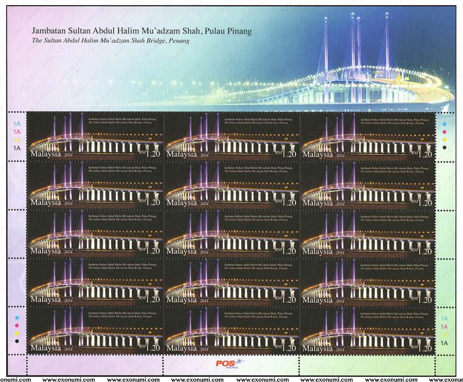 Malaysia - The Sultan Abdul Halim Mu'Adzam Shah Bridge, Penang (2014) 2 Sheets MNH
