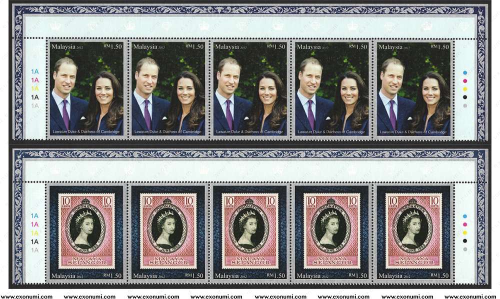Queen Elizabeth II Diamond Jubilee 1952-2012 & Royal Visit to Malaysia by TRH the Duke & Duchess of Cambridge (Block Strips)