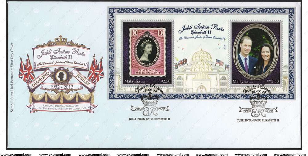 Queen Elizabeth II Diamond Jubilee 1952-2012 & Royal Visit to Malaysia by TRH the Duke & Duchess of Cambridge (FDC MS)
