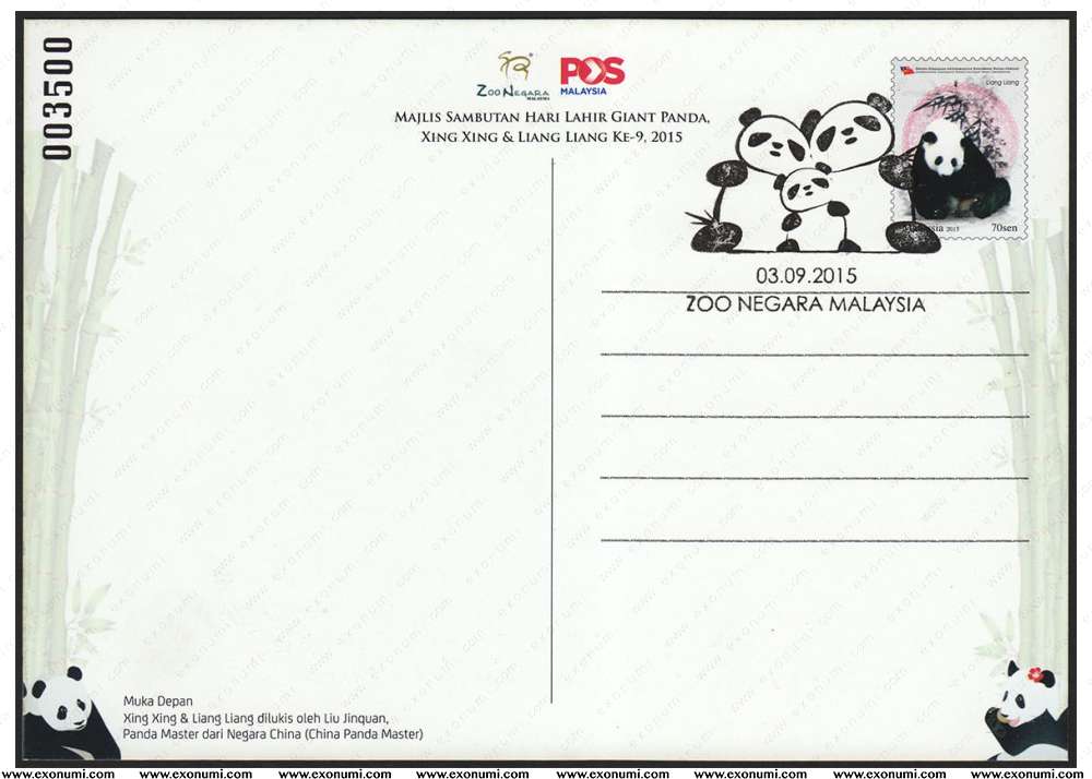 Malaysia - Panda Postal Card - Giant Pandas 9th Birthday Celebration (2015) 001904 FDI