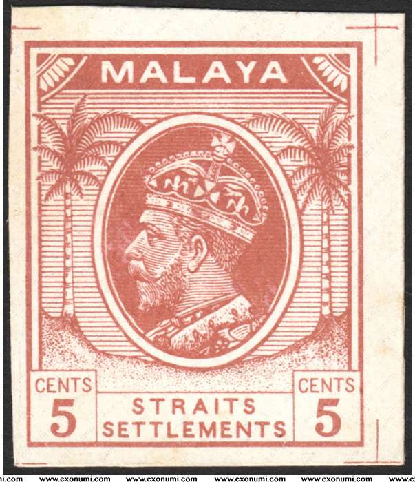 Straits Settlements - King George V 1933/34 5¢ Survey Deptment Essay, Norris Type-R in Brown (MH)