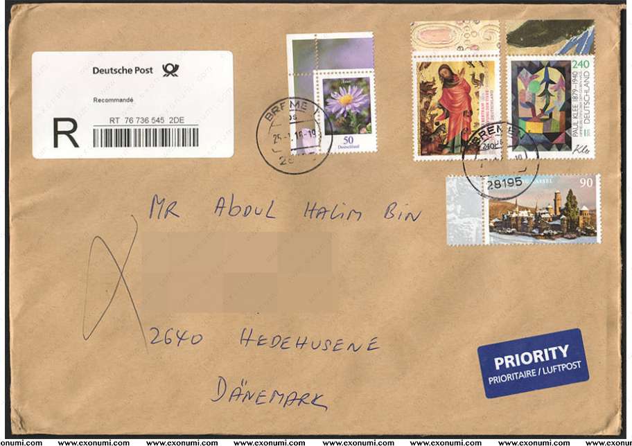 Denmark - Registered Mail from Germany (2016) with Stamps