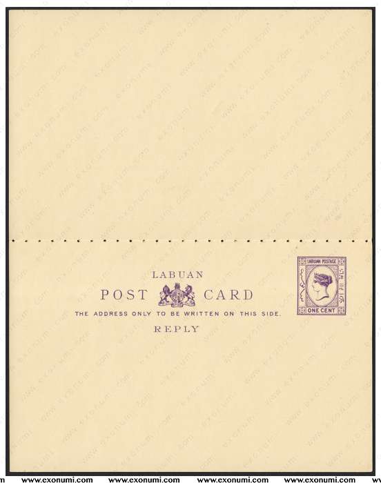 British Colony of Labuan - Portrait of Queen Victoria : 1¢ + 1¢ Reply (1893) MNH