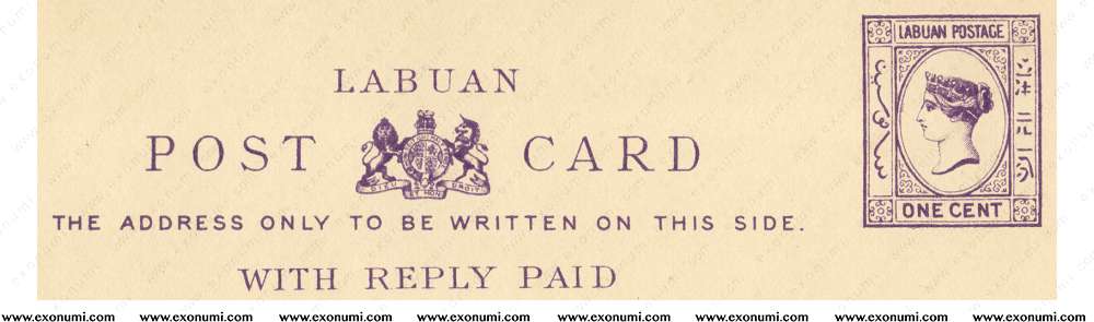 British Colony of Labuan - Portrait of Queen Victoria : 1¢ + 1¢ Reply (1893) MNH