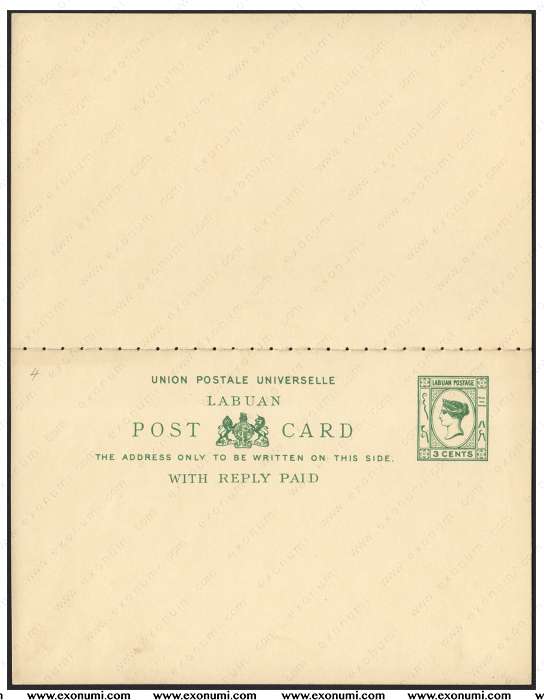 British Colony of Labuan - Portrait of Queen Victoria : 3¢ + 3¢ Reply (1893) MNH