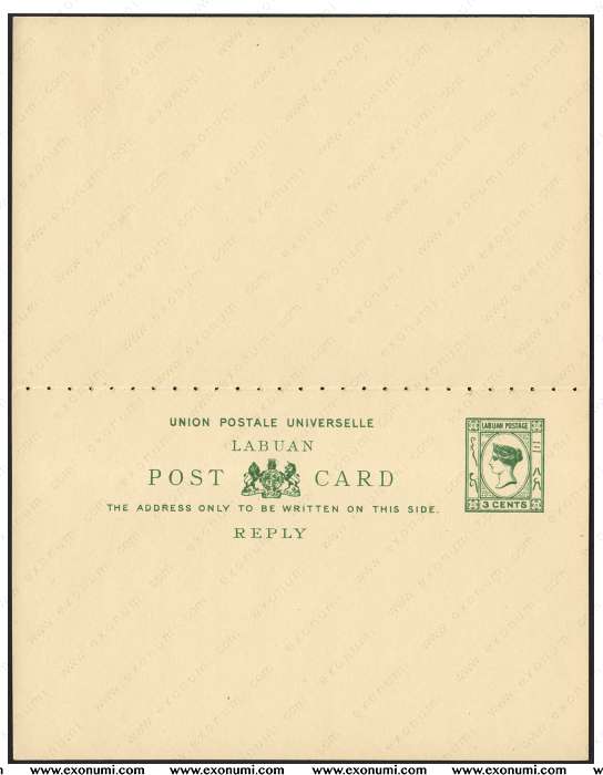 British Colony of Labuan - Portrait of Queen Victoria : 3¢ + 3¢ Reply (1893) MNH