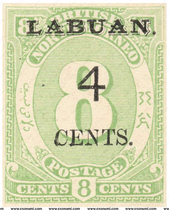 British Colony of Labuan - 4¢ Surcharged on 8¢ British North Borneo (1896) MNH