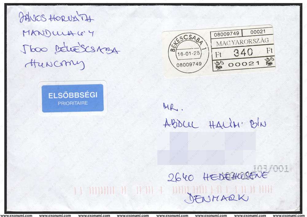 Denmark - Postal Cover from Hungary (2016) Postage Label