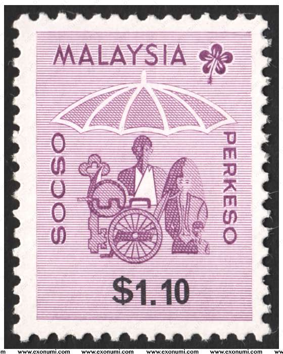 Malaysia - SOCSO Perkeso Revenue Stamps (1973 London Print) Complete 12 Values