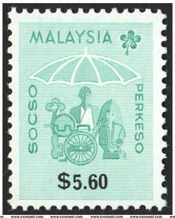 Malaysia - SOCSO Perkeso Revenue Stamps (1973 London Print) Complete 12 Values
