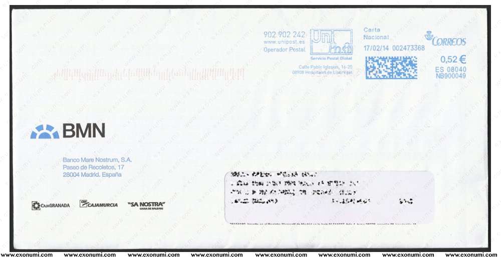 Spain - Unipost Franking : National Letter (2014)