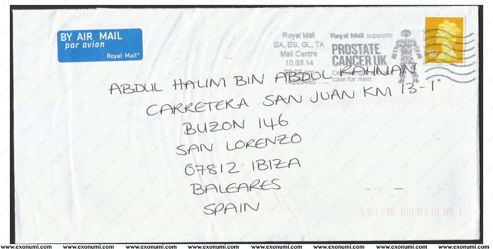 Spain - Postal Cover from UK (2014)