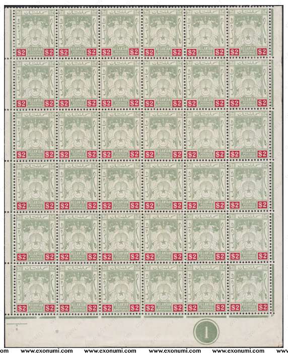 Kelantan $2 (First Issue 1911 - Emblem Series) Half-Pane