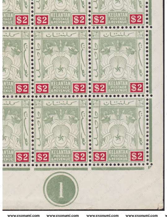 Kelantan $2 (First Issue 1911 - Emblem Series) Half-Pane