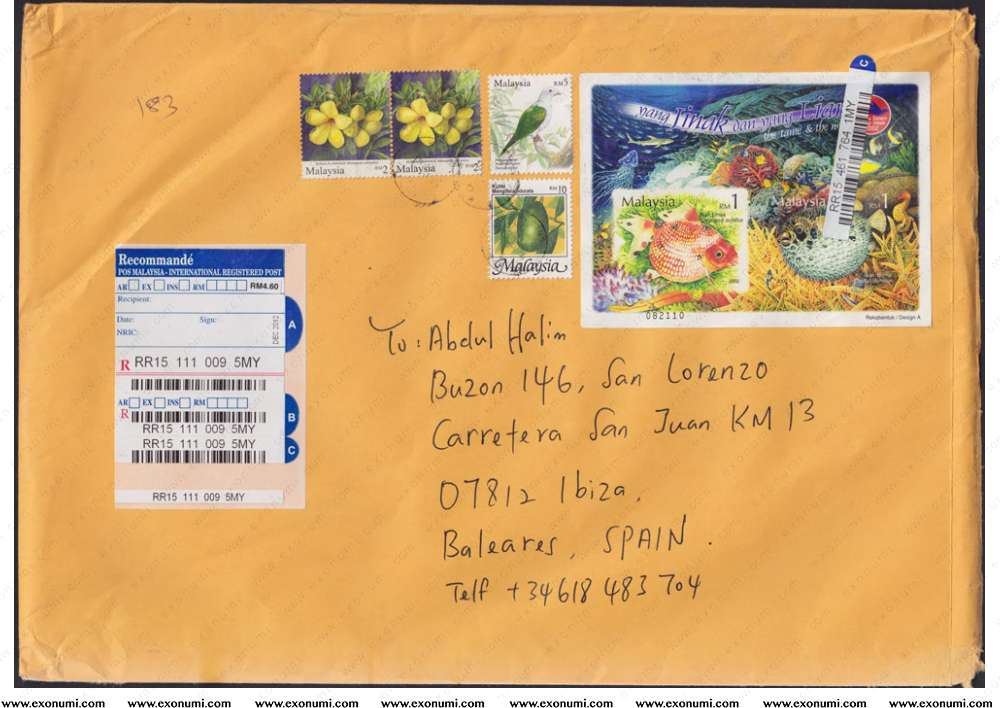 Spain - Registered Cover from Malaysia (2014)