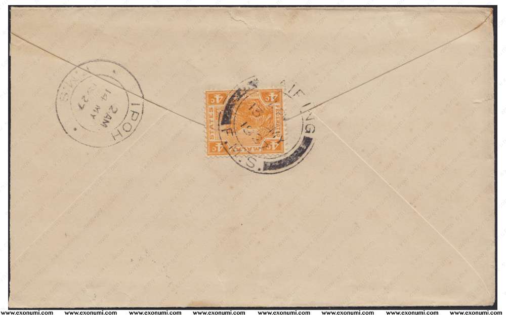 Perak - Cover from Taiping to Ipoh (1927) with Letter & Map